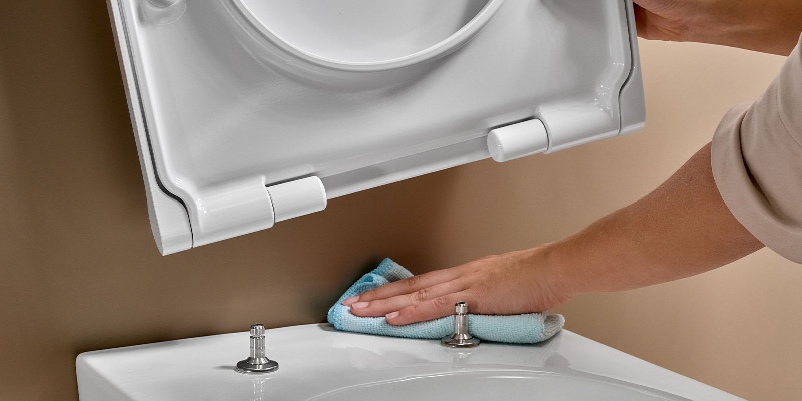 Auch der WC-Sitz sollte regelmäßig gepflegt werden. Verwenden Sie hierfür ein weiches, fusselfreies Tuch und ein mildes Reinigungsmittel, damit die Oberfläche nicht verkratzt. Besonders praktisch sind abnehmbare WC-Sitze, denn diese lassen sich einfach ab- und wieder anbringen – für maximale Hygiene.