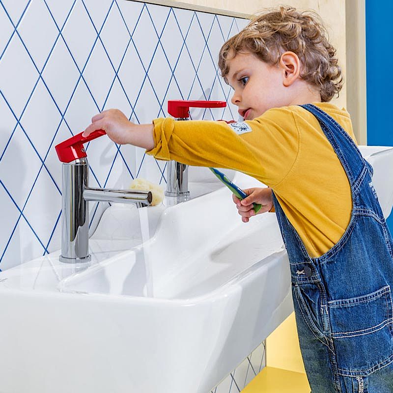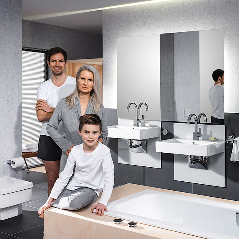 Im Familienbad sind reinigungsfreundliche Oberflächen das A und O der Badsanierung. Runde Waschbecken vermindern zudem das Verletzungsrisiko im gemeinsamen Bad. Ebenso sollten direkt mehrere Waschbecken in Ihrem neuen Bad einen Platz finden. So können Kinder und Eltern gleichzeitig das Bad nutzen. Wer bei der Badplanung direkt ein niedriges Kinderwaschbecken vorsieht, spart sich später die Wackelpartie auf dem Kinderhocker.