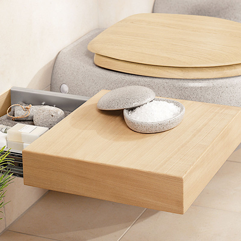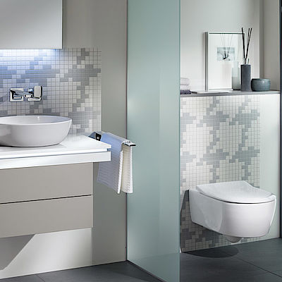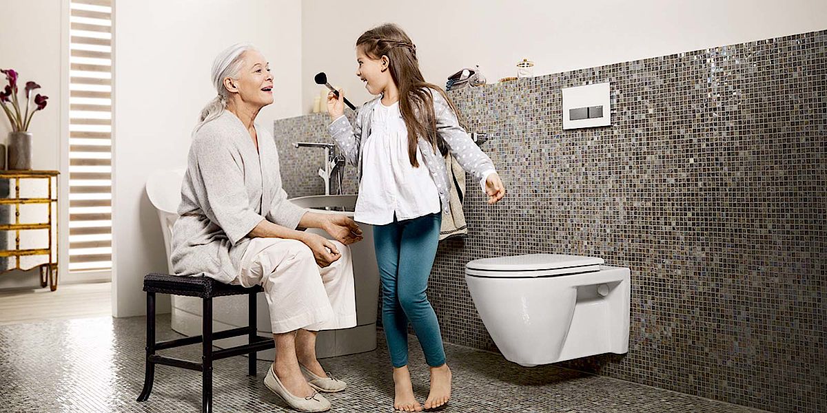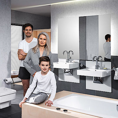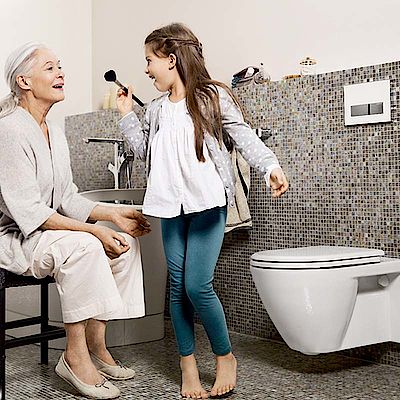 Bei vielen Kinder im Haus, wird gerade das Bad besonders häufig und stark beansprucht. Darum sollten Sie bei der Badsanierung unbedingt auf hygienische Toilettenlösungen achten. WCs ohne Spülrand oder mit verdeckter Befestigung sind besonders leicht zu reinigen. Durch eine zusätzliche Absenkautomatik sorgen Sie außerdem dafür, dass der Toilettendeckel nach der WC-Benutzung automatisch geschlossen wird.