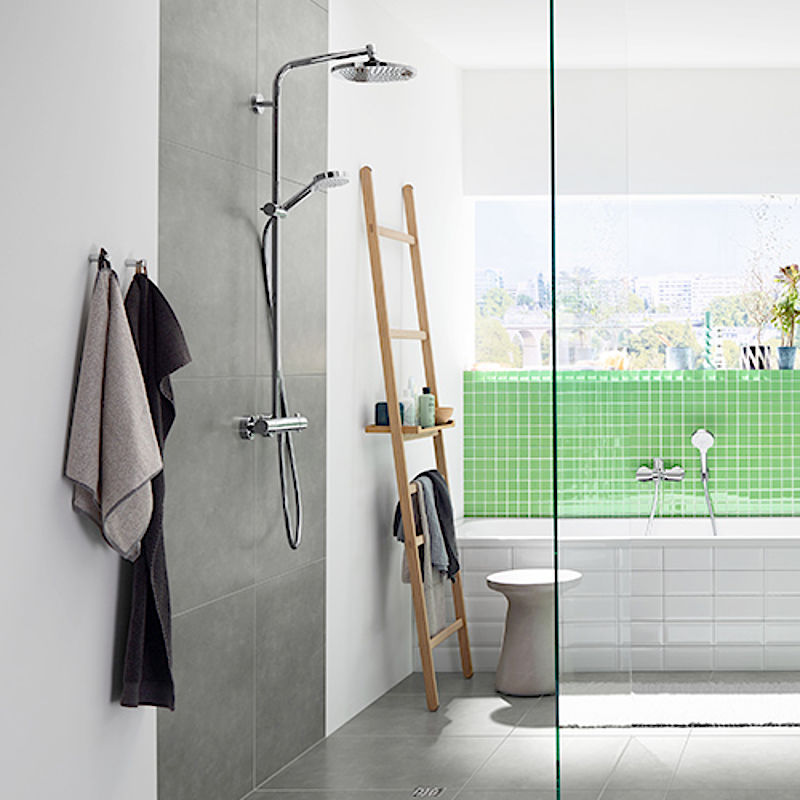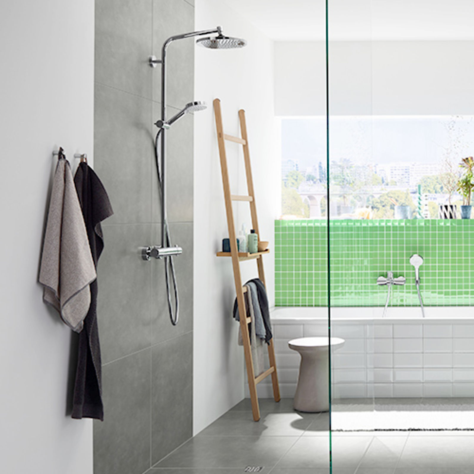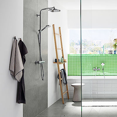 Auch eine Dusche kann für echte Wellness-Momente im Bad sorgen. Für die Badsanierung von kleinen Bädern eignen sich hier vor allem effiziente Einrichtungslösungen, die für Raumecken optimiert sind, wie etwa eine Eck-Duschwanne. Eine Regenbrause, die die Hektik des Alltags einfach hinwegspült, sorgt dabei für echte Relax-Atmosphäre im Bad. Bei der Badgestaltung von Mini-Bädern bietet sich zudem eine gläserne Duschkabine an. So genießen Sie beim Duschen den Blick auf Ihre persönliche Wohlfühl-Oase, ohne Ihr Bad zu überladen.
