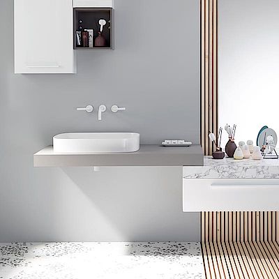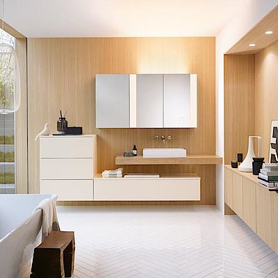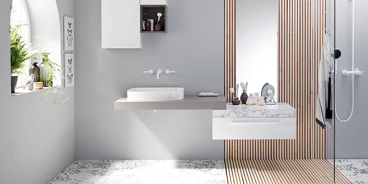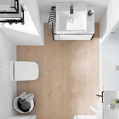 Das Geheimnis bei der Badsanierung eines kleinen Bades ist die Wahl der passenden Sanitärobjekte. Mit minimalistischem und durchdachtem Design legen Sie den Fokus klar auf Funktionalität – und das bei höchstem Komfort. Abgerundete Ecken bewirken gerade in kleinen Bädern oft schon Wunder und lassen das Bad weicher wirken. Setzen Sie zudem bei der Badsanierung ein besonders schmales oder Eck-Waschbecken und oder ein Wand-WC ein. Das spart nicht nur Platz in Ihrem Bad, es macht auch das Reinigen einfach und schnell. Wollen Sie ein kleines Bad sanieren, sollten Sie außerdem für ausreichend Stauraum sorgen. Mit praktischen Wandhängeboards zum Beispiel bringen Sie schnell Ordnung in Ihr Bad.
