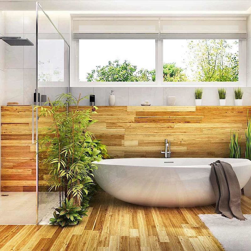 Die Ausstattung allein macht noch kein Wellnessbad: Erst die verwendeten Materialien, Farben und Accessoires sorgen für die passende Wohlfühl-Atmosphäre. Bei der Badsanierung sollten Sie daher besonders auf die Verwendung von Naturmaterialien im Ruhebereich achten. Diese sorgen für Wärme und Behaglichkeit in Ihrem neuen Bad. Wählen Sie bei der Badgestaltung auch eine stimmungsvolle Beleuchtung wie von warmem Kerzenlicht – so runden Sie Ihr Wellness-Paket für das Luxus-Bad ab.