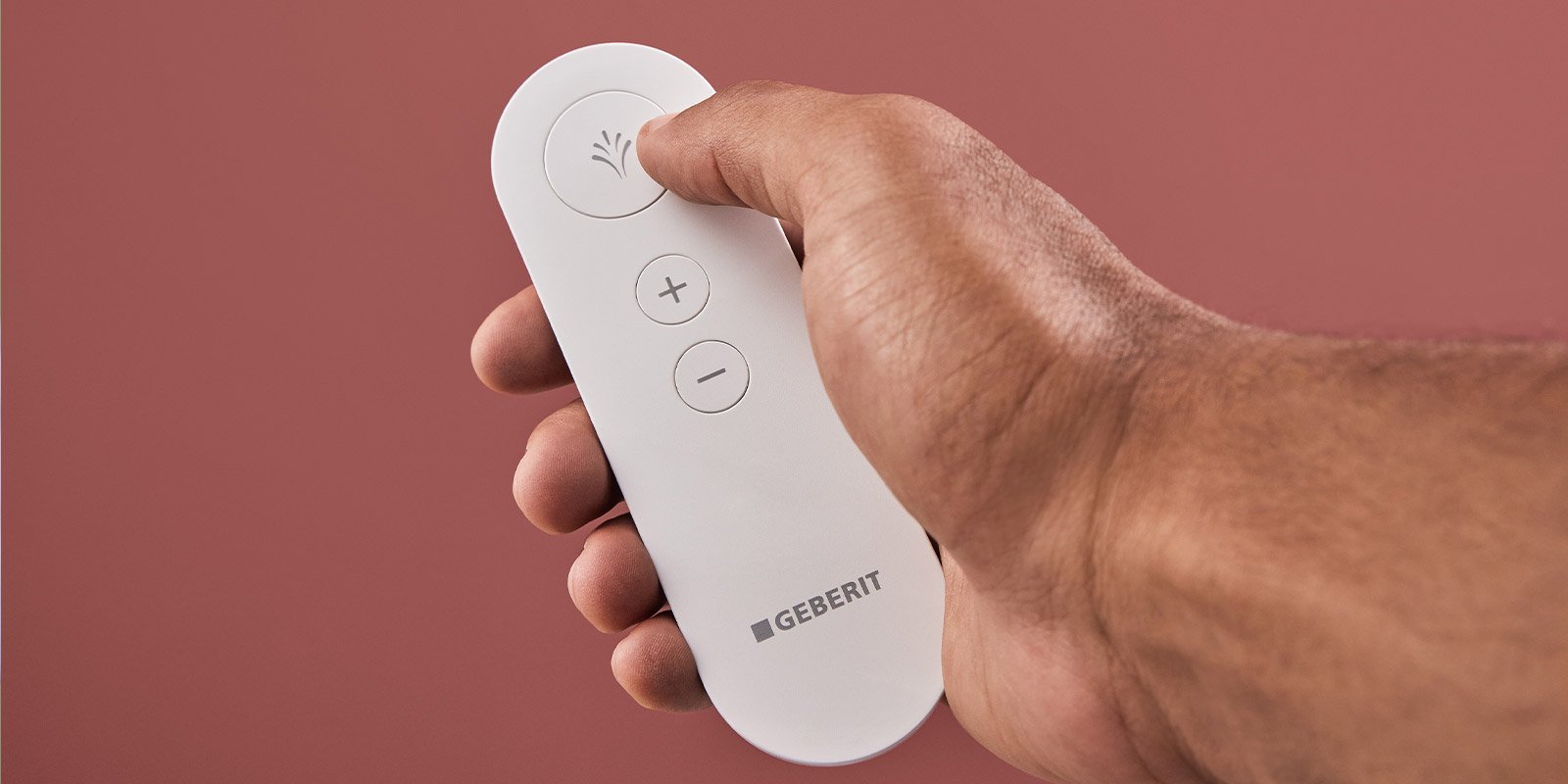 Mit der intuitiven Fernbedienung lässt sich der Duschvorgang des AquaClean Alba starten und die Duschstrahlstärke komfortabel regulieren.