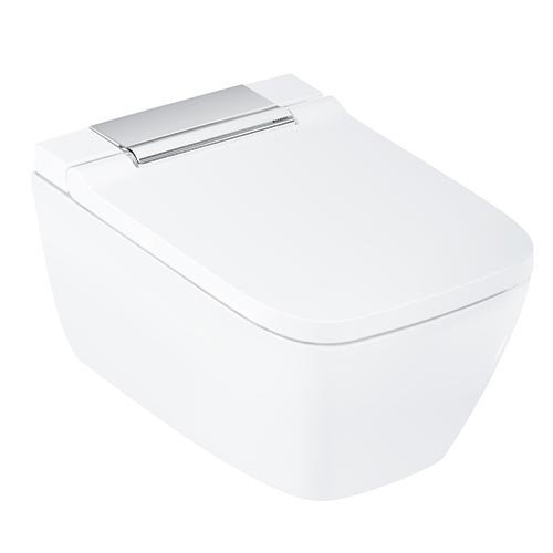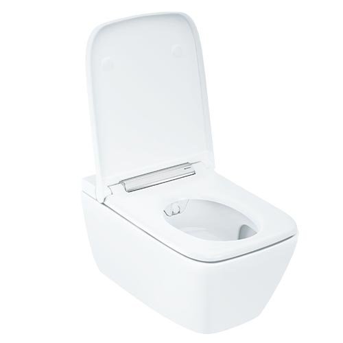 Im eckigen Design des neuen Geberit AquaClean Sela Square befinden sich die gleichen Funktionen wie im bekannten AquaClean Sela: Spülrandlose Keramik mit TurboFlush, WhirlSpray-Duschtechnologie, Ladydusche und Orientierungslicht. Auch bei AquaClean Sela Square ist die gesamte Technik des Dusch-WCs unsichtbar in die Keramik integriert.
