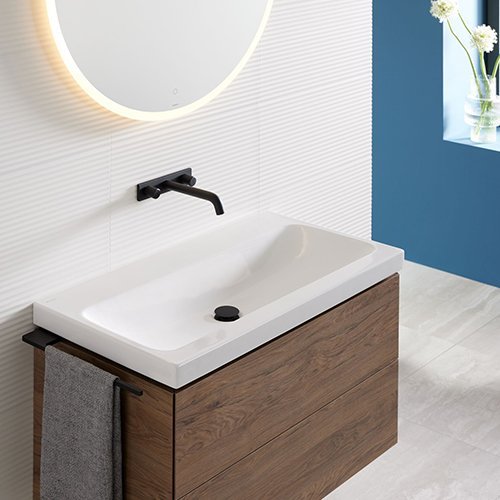 Mit Geberit ONE hat der Hersteller seit einigen Jahren eine Badserie auf dem Markt, deren Bestandteile sich so gut miteinander kombinieren lassen, dass über 2.000 verschiedene Designvarianten realisierbar sind. Dem individuellen Geschmack waren bislang aber Grenzen gesetzt. Zum Beispiel, wenn ein bestimmter Waschtisch von ONE am besten gefiel, aber Möbel mit Griffen oder Glasfronten bevorzugt wurden. Mitdem Konzept Geberit Mix & Match werden Bauform und Technik vereinheitlicht, das individuelle Design der jeweiligen Serie bleibt bestehen. So kann der Kunde Waschtische mit sämtlichen Waschtischunterschränken der Geberit Serien ONE, iCon und Acanto kombinieren.